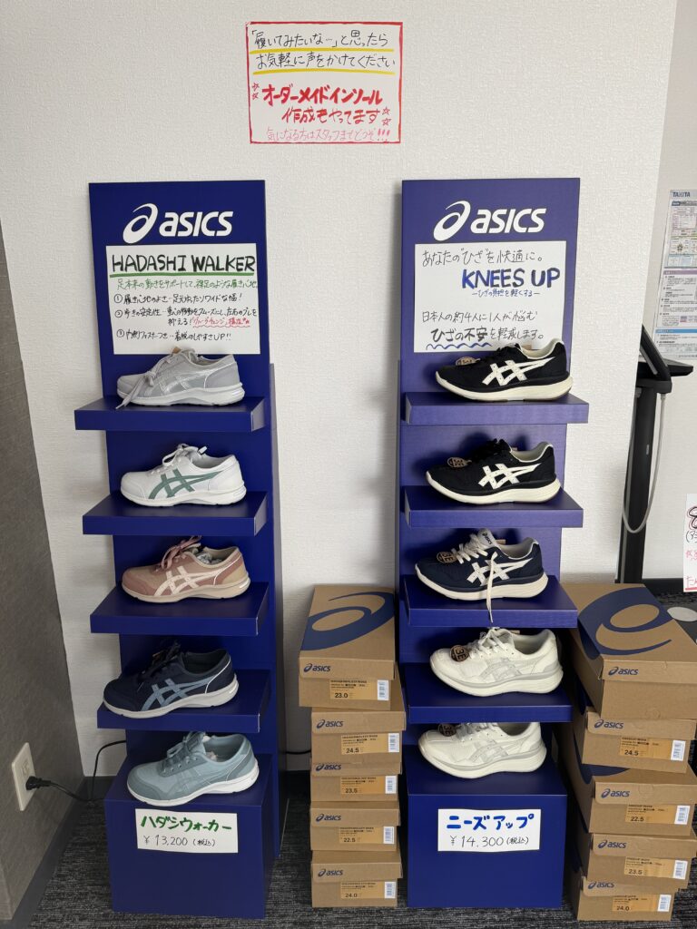 メディウェルネス富士では、医療・スポーツ両分野で高い評価を得ているASICS(アシックス)製シューズを中心に取り扱っています。
